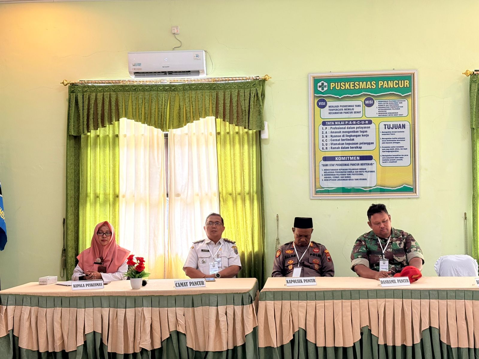 Loka Karya Mini Lintas Sektor Triwulan I yang dirangkaikan dengan cek kesehatan gratis bagi seluruh tamu undangan diselenggarakan pada 25 Februari 2026 di Aula Puskesmas Pancur. Kegiatan ini dihadiri oleh Camat, seluruh kepala desa se-Kecamatan Pancur, perwakilan Forum Koordinasi Pimpinan Kecamatan (Forkopimcam), serta unsur terkait lainnya.