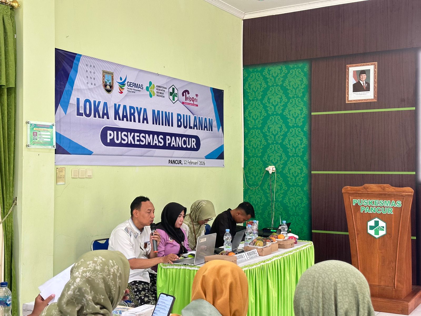 Lokakarya Mini Bulanan Puskesmas Pancur dilaksanakan pada tanggal 12 Februari 2026 bertempat di Aula Puskesmas Pancur. Kegiatan ini dihadiri oleh Kepala Bidang Kesehatan Masyarakat Dinas Kesehatan Kabupaten Rembang, drg. Dini Nuraida, MMRS, Kepala Puskesmas Pancur dr. Trianovi Puspasari, serta seluruh karyawan Puskesmas Pancur. Kegiatan tersebut bertujuan untuk melakukan monitoring, evaluasi, dan pembinaan program dalam rangka meningkatkan mutu pelayanan serta pencapaian indikator kesehatan di wilayah kerja Puskesmas Pancur.