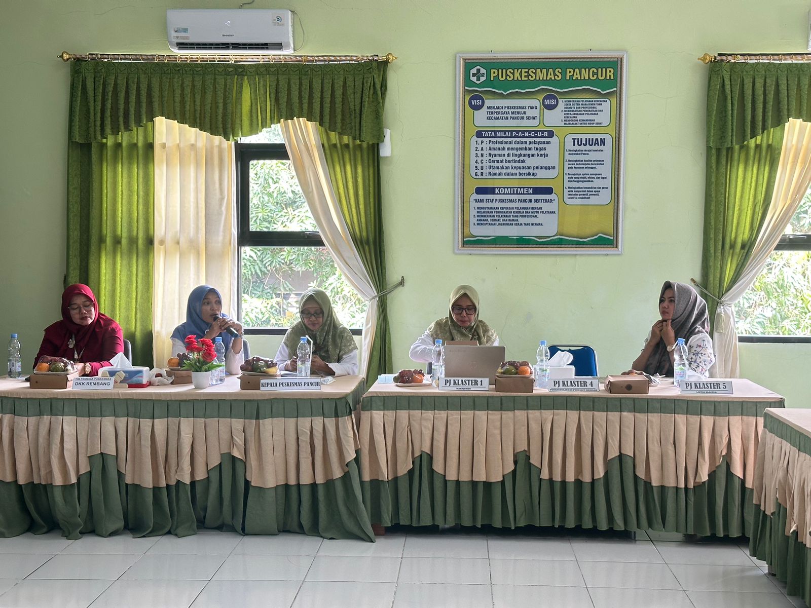 Dalam sambutannya, dr. Trianovi Puspasari menyampaikan bahwa jumlah peserta BPJS Penerima Bantuan Iuran (PBI) nonaktif secara keseluruhan mencapai 12.000 peserta, dengan sekitar 1.000 peserta berada di wilayah kerja Puskesmas Pancur. Pasien dengan hipertensi, Diabetes Melitus, penyakit kronis lainnya, serta ibu hamil di wilayah Kecamatan Pancur diarahkan untuk mengajukan reaktivasi ke pesertaan secara kolektif melalui Puskesmas Pancur. Selain itu, kegiatan Cek Kesehatan Gratis (CKG) dalam rangka skrining Penyakit Tidak Menular (PTM) telah disosialisasikan di seluruh desa, dengan pencatatan data menggunakan formulir CKG sebagai bentuk penguatan sistem pelaporan.