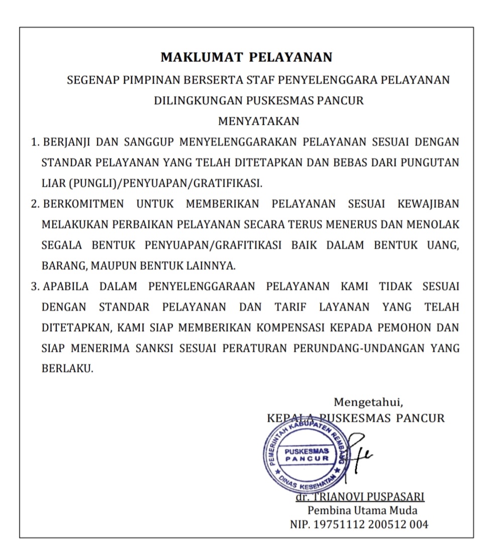 Maklumat Pelayanan Puskesmas Pancur.